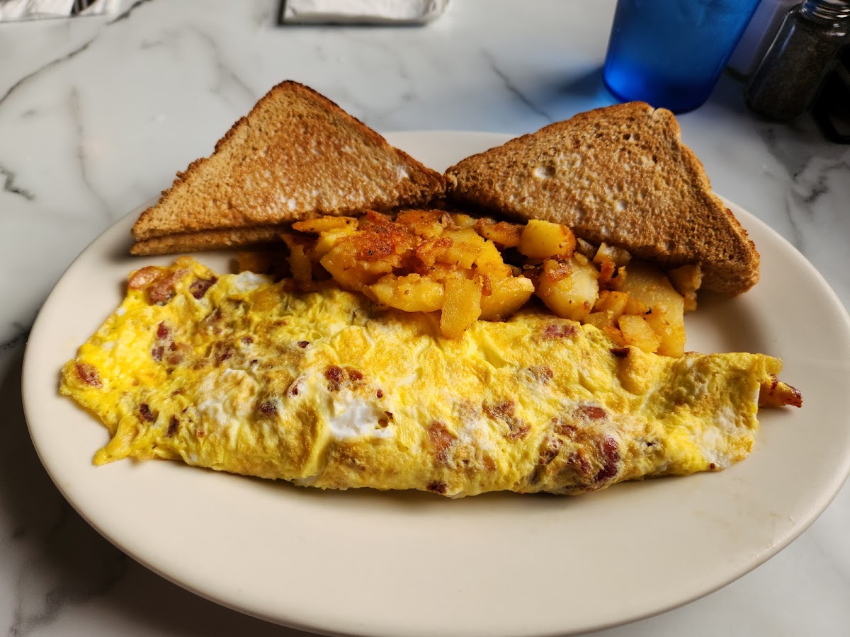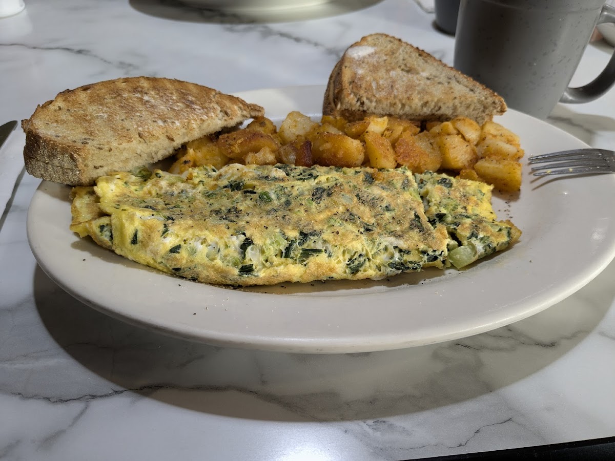 It was the best western omelet I had in a while, Great Service, and the price was $15 with cheese, wheat, and coofee too. Not bad. Also, $5 tip.